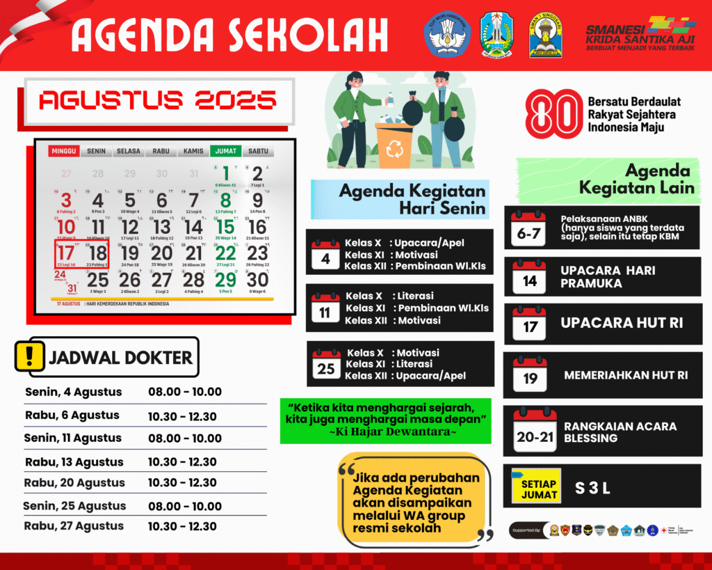 Semoga agenda sekolah setiap bulan yang sudah terencana dan terprogramkan diharapkan dapat menjadi panduan bagi kita semua dalam mewujudkan pendidikan yang berkualitas dan berkarakter.